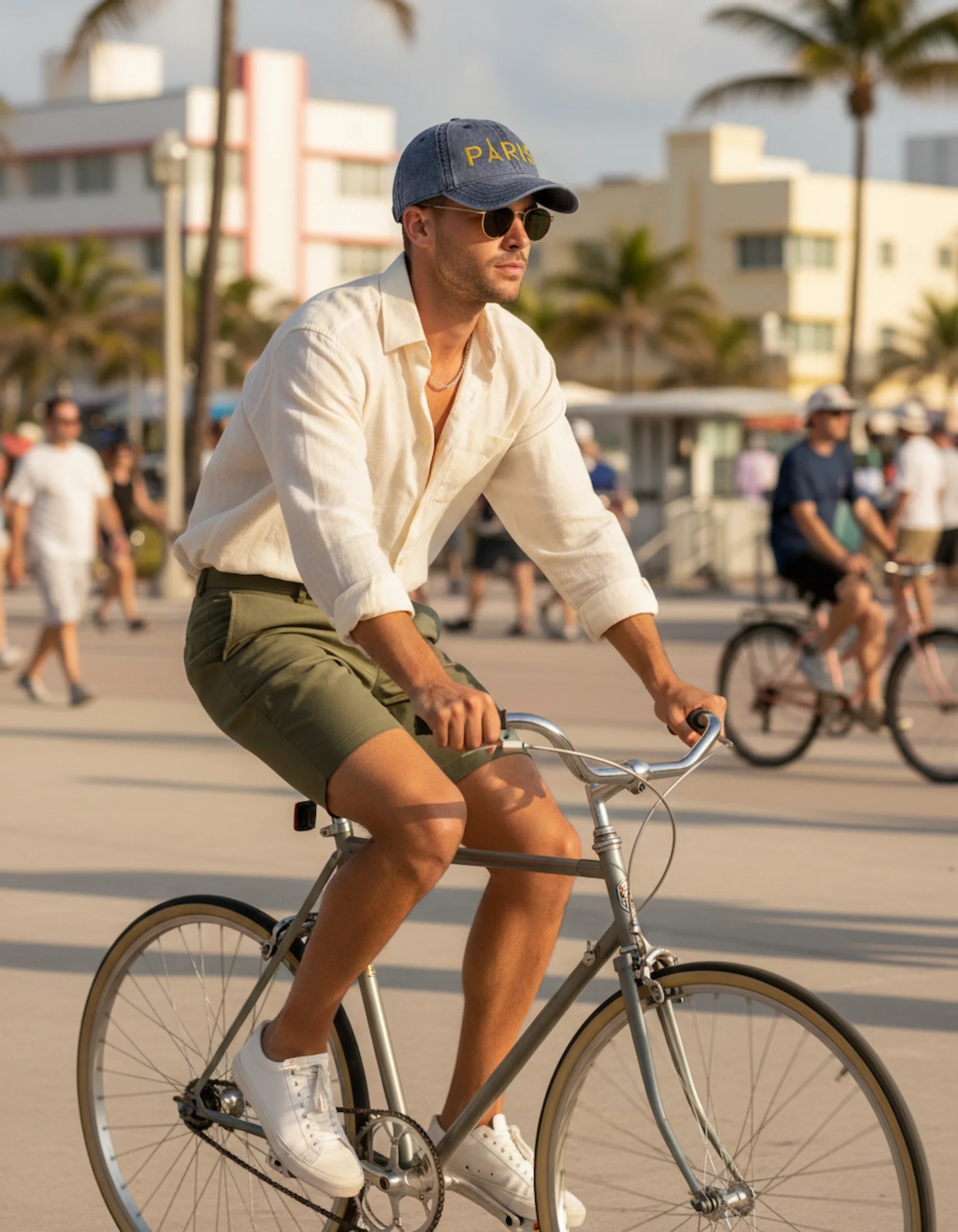 - Gold “PARIS” embroidery with Eiffel Tower icon